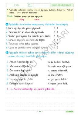 6. TEMA Adı : SEBEP - SONUÇ CÜMLELERİ