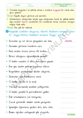 tılı”, duygu bildiren ifadelerin karşısına “duygu” yazınız.
