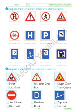B Aşağıdaki trafik levhalarının anlamlarını belirtiniz.