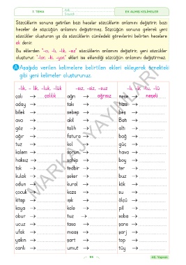 7. TEMA Adı : EK ALMIŞ KELİMELER