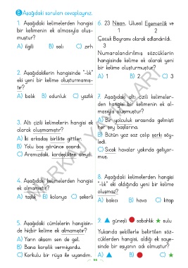 A) balık B) odunluk C) yazlık 7. Aşağıdaki altı çizili kelimeler-