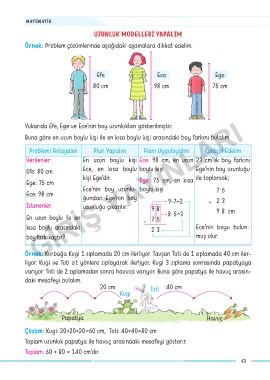 Çözüm: Kugi: 20+20+20=60 cm, Toti: 40+40=80 cm