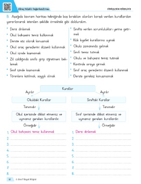 B. Aşağıda kavram haritası tekniğinde boş bırakılan alanları karışık verilen kurallardan