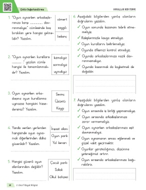 1. “Oyun oynarken arkadaşla- cömert 6. Aşağıdaki bilgilerden yanlış olanların