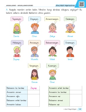 A. Aşağıda resimleri verilen kişiler, Mine’nin hangi akrabası olduğunu söylüyor? Bu