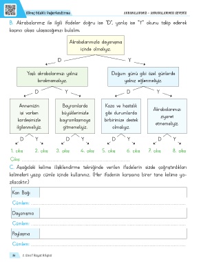 B. Akrabalarımız ile ilgili ifadeler doğru ise “D”, yanlış ise “Y” okunu takip ederek