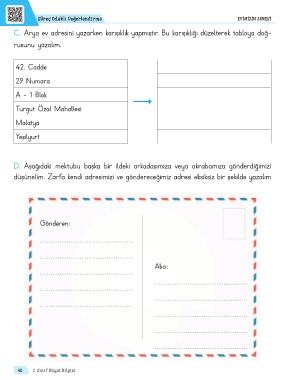 D. Aşağıdaki mektubu başka bir ildeki arkadaşımıza veya akrabamıza gönderdiğimizi