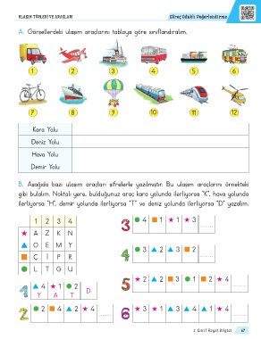 B. Aşağıda bazı ulaşım araçları şifrelerle yazılmıştır. Bu ulaşım araçlarını örnekteki