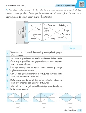 A. Aşağıdaki açıklamalarda acil durumlarda aranması gereken kurumları kart üze-