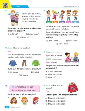 A) Is Bill tall? B) Is Ken blond? cüklerine karşılık gelen posterleri taşı-