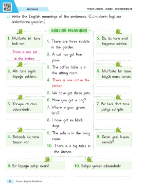 U. Write the English meanings of the sentences. (Cümlelerin İngilizce