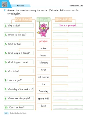 R. Answer the questions using the words. (Kelimeleri kullanarak soruları