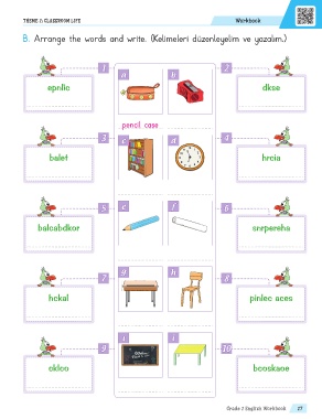 B. Arrange the words and write. (Kelimeleri düzenleyelim ve yazalım.)