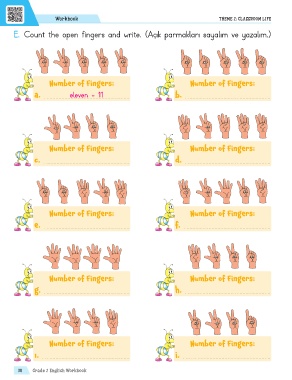 E. Count the open fingers and write. (Açık parmakları sayalım ve yazalım.)
