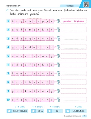 C. Find the words and write their Turkish meanings. (Kelimeleri bulalım ve