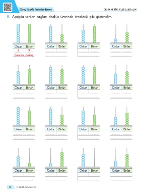 B. Aşağıda verilen sayıları abaküs üzerinde örnekteki gibi gösterelim.
