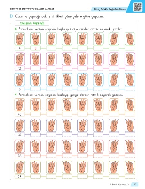 Parmakları verilen sayıdan başlayıp geriye dörder ritmik sayarak yazalım.
