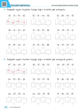 B. Aşağıdaki sayıları küçükten büyüğe doğru örnekteki gibi sıralayarak yazalım.