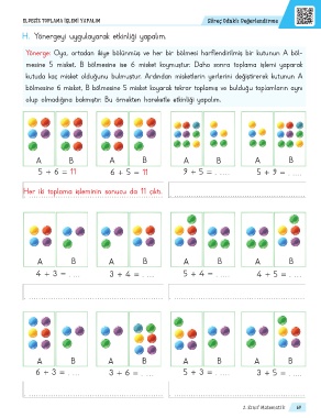 mesine 5 misket, B bölmesine ise 6 misket koymuştur. Daha sonra toplama işlemi yaparak