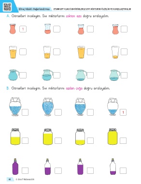 A. Görselleri inceleyim. Sıvı miktarlarını çoktan aza doğru sıralayalım.