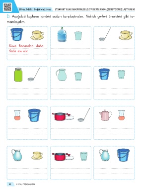 D. Aşağıdaki kapların içindeki sıvıları karşılaştıralım. Noktalı yerleri örnekteki gibi ta-