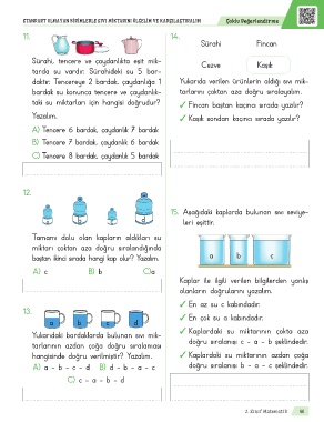 hangisinde doğru verilmiştir? Yazalım. ✓ Kaplardaki su miktarının azdan çoğa
