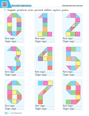 B. Aşağıdaki görsellerde verilen geometrik şekillerin sayılarını yazalım.