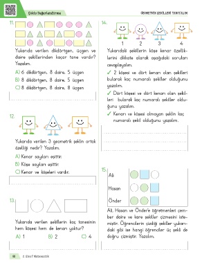 C) Kenar ve köşeleri vardır. 15.
