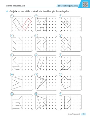 SİMETRİKŞEKİLLERİBULALIM Süreç Odaklı Değerlendirme A. Aşağıda verilen şekillerin simetrisini örnekteki gibi tamamlayalım. 1 2 3 4 5 6 7 8 9 10 11 12 13 14 15 2. Sınıf Matematik 73