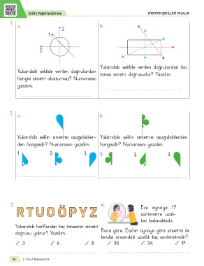 Yukarıdaki şekilde verilen doğrulardan tanesi simetri doğrusudur? Yazalım.