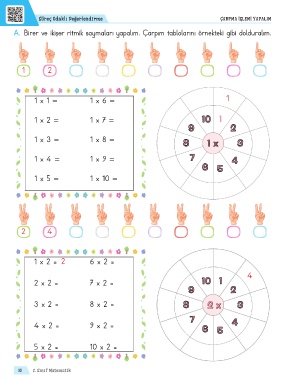 A. Birer ve ikişer ritmik saymaları yapalım. Çarpım tablolarını örnekteki gibi dolduralım.