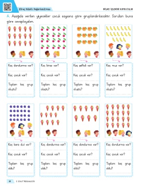 A. Aşağıda verilen yiyecekler çocuk sayısına göre gruplandırılacaktır. Soruları buna