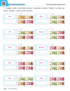 C. Aşağıda verilen kutulardaki paraların toplamlarını bulalım. Kişilerin ne kadar pa-