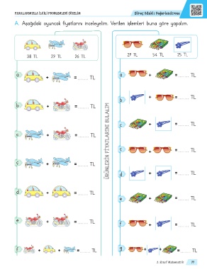A. Aşağıdaki oyuncak fiyatlarını inceleyelim. Verilen işlemleri buna göre yapalım.