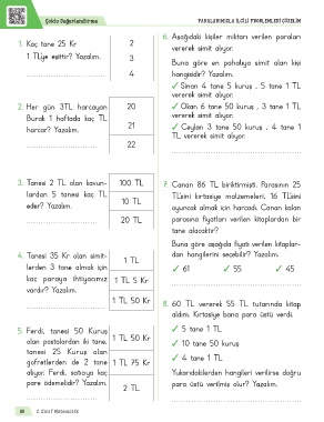 3. Tanesi 2 TL olan kavun- 100 TL 7. Canan 86 TL biriktirmişti. Parasının 25
