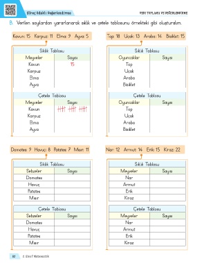 B. Verilen sayılardan yararlanarak sıklık ve çetele tablosunu örnekteki gibi oluşturalım.