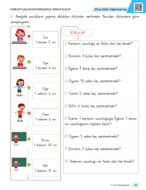 A. Aşağıda çocukların yapmış oldukları ölçümler verilmiştir. Soruları ölçümlere göre