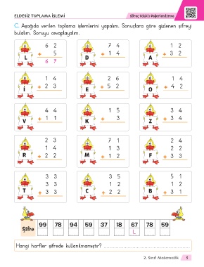 C. Aşağıda verilen toplama işlemlerini yapalım. Sonuçlara göre gizlenen şifreyi