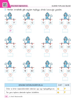 D. Verilen örnekteki gibi sayıları toplayıp alttaki kutucuğa yazalım.
