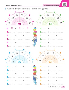 E. Aşağıdaki toplama işlemlerini örnekteki gibi yapalım.