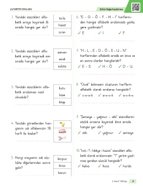 1. Yandaki sözcükleri alfa- tarla 6. “E - G - Ğ - F - H - I” harflerin-