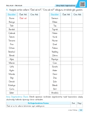 A. Aşağıda verilen adların “Özel ad mı?”, “Cins adı mı?” olduğunu örnekteki gibi yazalım.
