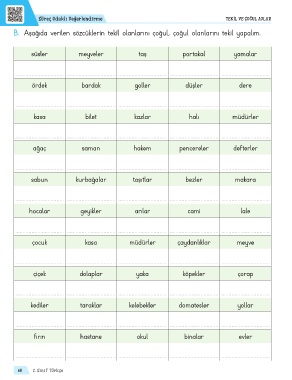 B. Aşağıda verilen sözcüklerin tekil olanlarını çoğul, çoğul olanlarını tekil yapalım.