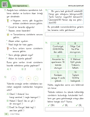 11. Aşağıda bazı noktalama işaretlerinin kul- 13. Bir yavru kedi gördüm(I) sokakta(II)