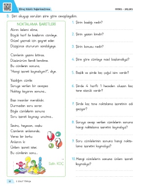 B. Şiiri okuyup soruları şiire göre cevaplayalım.