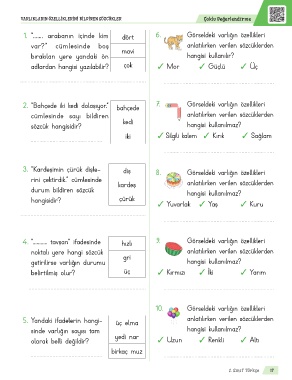 var?” cümlesinde boş mavi anlatılırken verilen sözcüklerden