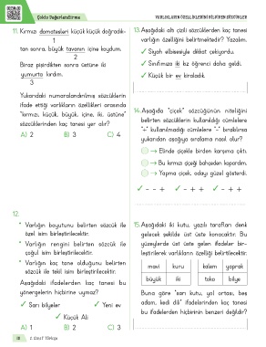 11. Kırmızı domatesleri küçük küçük doğradık- 13. Aşağıdaki altı çizili sözcüklerden kaç tanesi