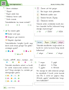 9. ▲ Yaz mevsimi geldi. ✓ EV ✓ ÖDEV ✓ VEDA