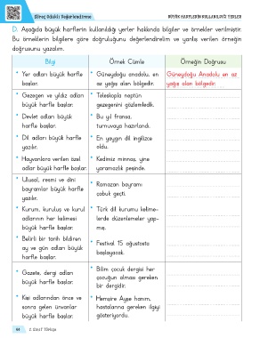 D. Aşağıda büyük harflerin kullanıldığı yerler hakkında bilgiler ve örnekler verilmiştir.