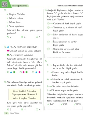 13. Pelin arkadaşı Sahra’ya mektup yollamak harfleri büyük yazılır.